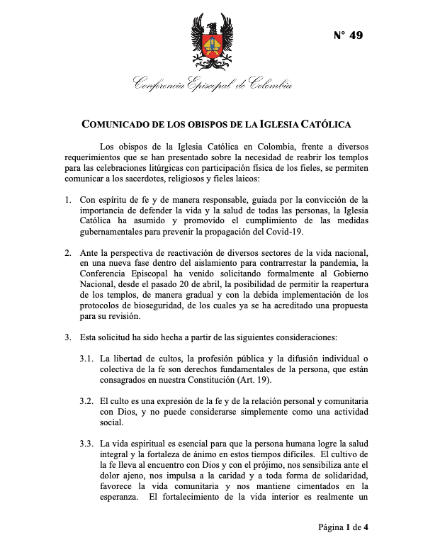 Comunicado sobre la Reapertura de Templos