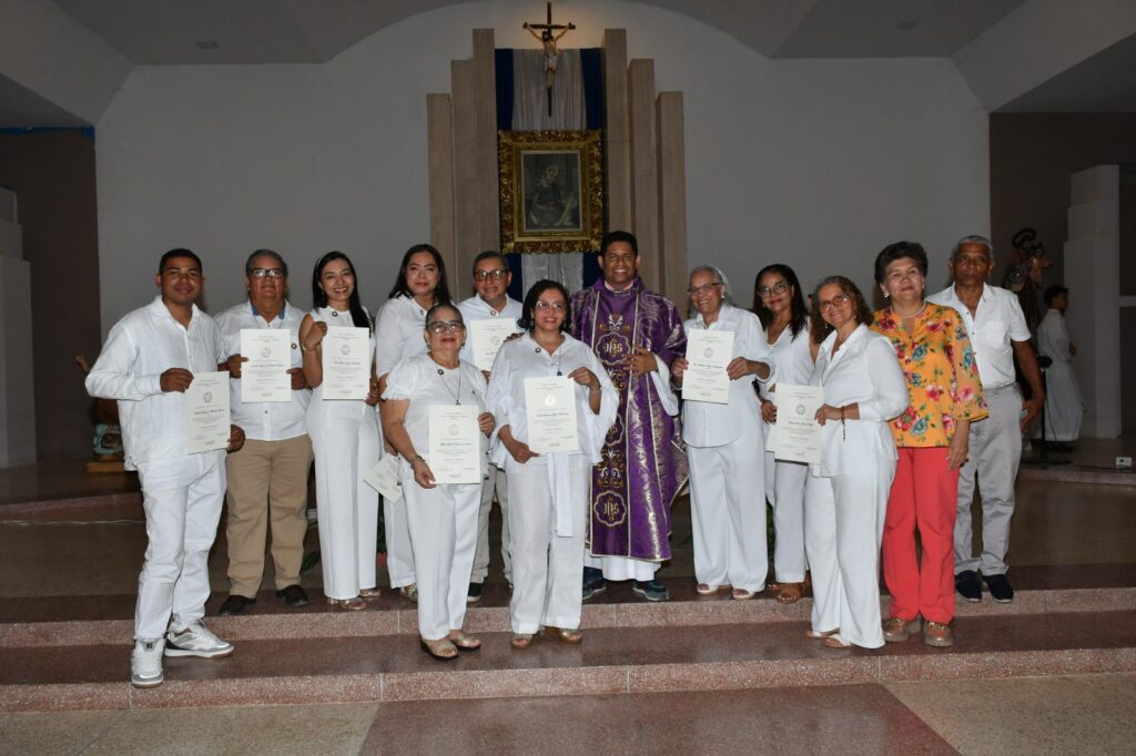 El pasado sábado 22 de marzo, en la parroquia Nuestra Señora del Rosario de Pompeya, estos hermanos en la fe recibieron su diploma en el marco de una solemne Eucaristía presidida por el Pbro. Jairo Oliveros. Su dedicación y compromiso con la evangelización son un signo de esperanza y renovación para nuestras comunidades.