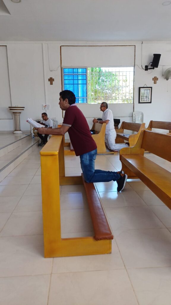 El relevo pastoral es recibido por el Padre Jair Manjarrez, quien comienza su servicio tras una oración de adoración al Santísimo Sacramento preparada por el párroco saliente. Tras cumplir con el protocolo de visita y un breve recorrido por los puntos de interés de la parroquia, la jornada continua en el municipio de Chimá.